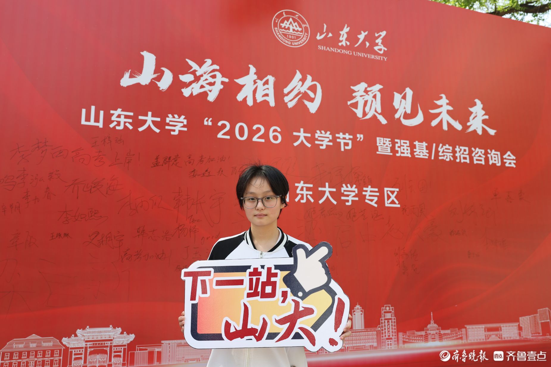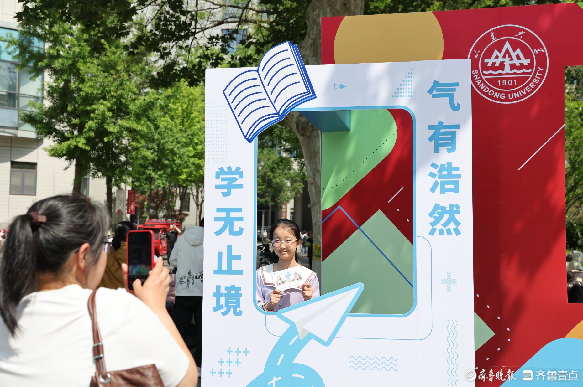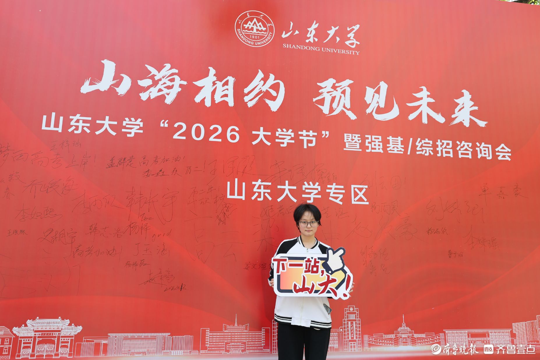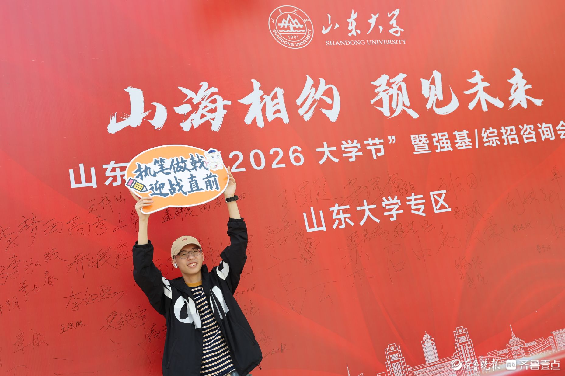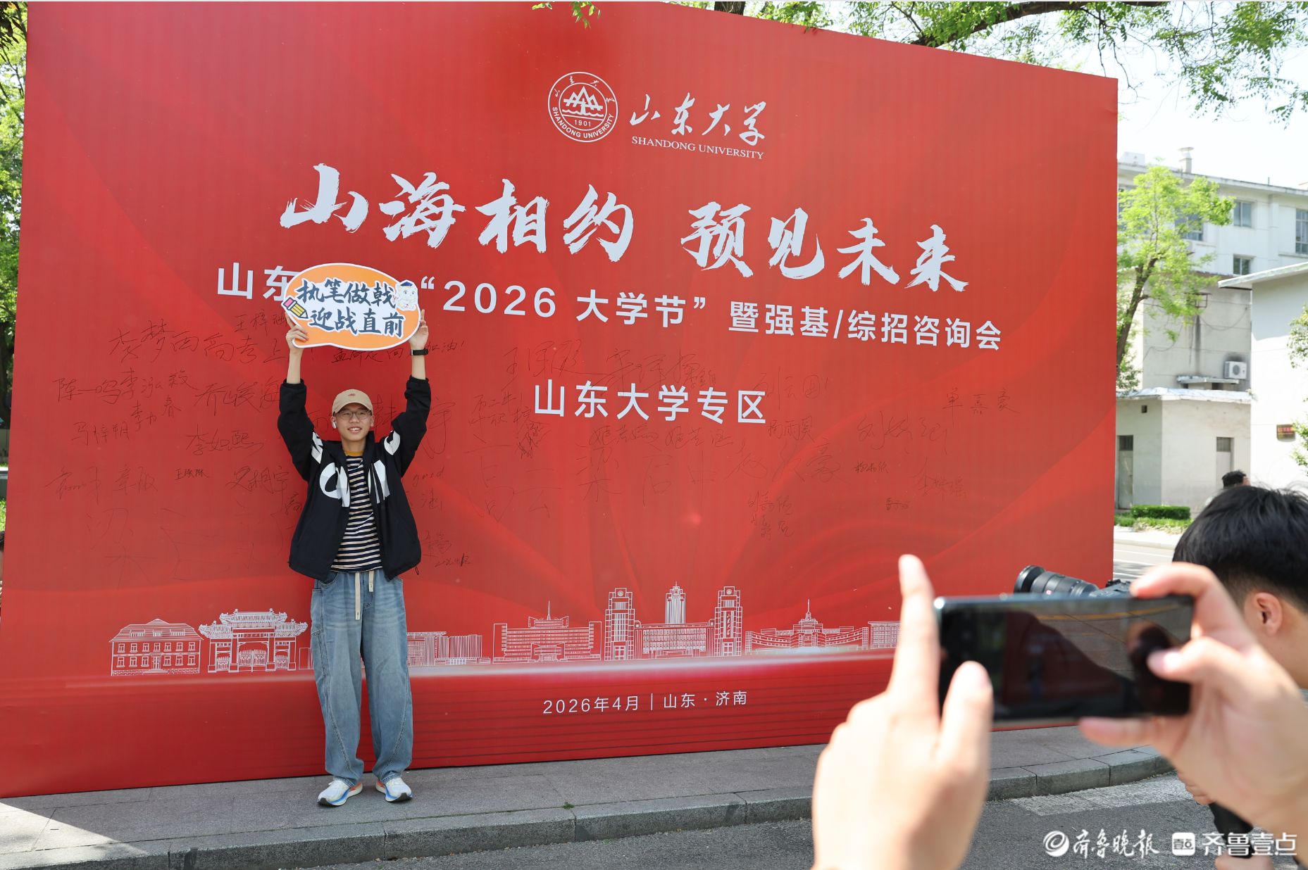 4月18日,"山海相约 遇见未来"山东大学"2026大学节"暨强基/综招咨询会在山东大学中心校区开幕。山东大学一校三地所有学院,南开、中科大等18所强基/综招高校,以及北京交通大学等优质特色高校齐聚,为考生及家长提供面对面咨询服务。 校园内特别设置了多处主题打卡点,前来咨询的考生纷纷在打卡点拍照留念。镜头前,他们许下心愿,期待未来能考入山大,与打卡点的合影承载着对理想学府的美好憧憬,也成为这个春天最珍贵的青春印记。