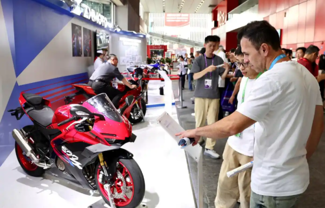据报道,首次参加广交会的张雪机车携冠军同款820RR惊艳亮相,展位一早便挤满了慕名而来的海外采购商与国内同行。